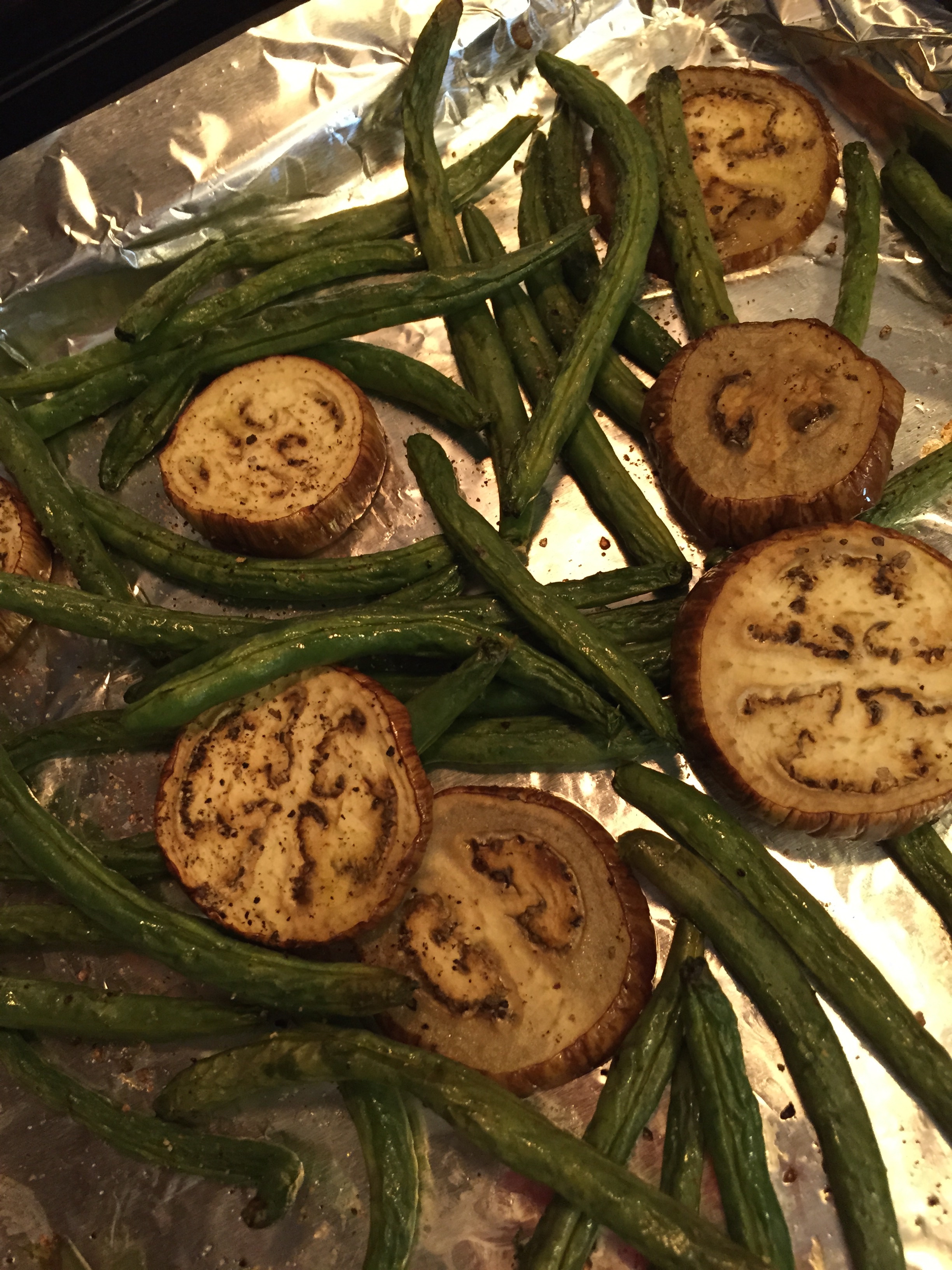 I put them on a big cookie pan and added 1 TBSP coconut oil. I rubbed them with my hands and spread them out.