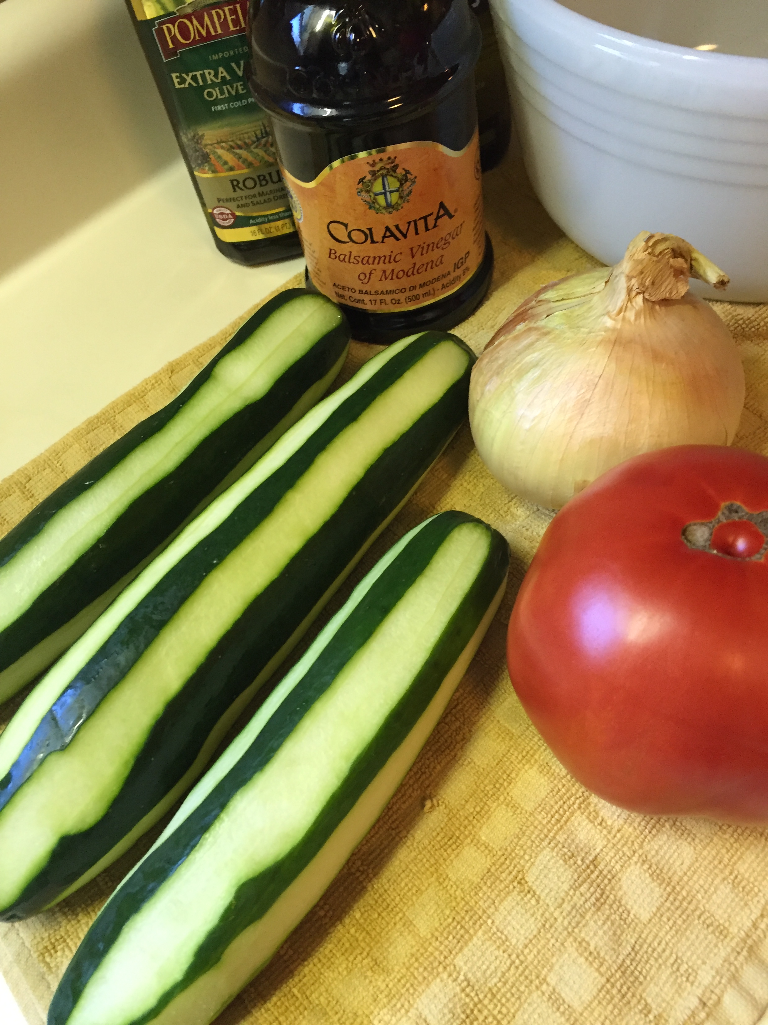 I washed and peeled half of the outside of 3 organic cucumbers.